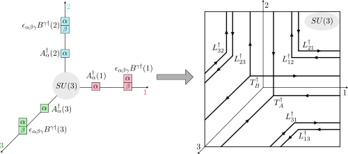 Loop-string-hadron approach to SU(3) lattice Yang-Mills theory, II: Operator representation for the trivalent vertex