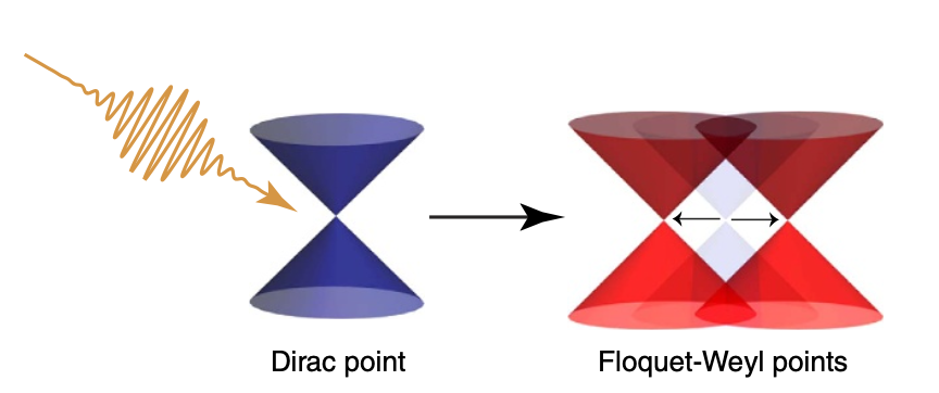 Three-dimensional Weyl materials provide a controlled setting for exploring Floquet dynamics in open quantum systems, including nonequilibrium steady states (NESS). Motivated by the desire for a strongly-coupled description, we employ holography to analyze the formation and stability of a NESS in a Weyl semi-metal induced by an external circularly polarized electric field. A time-periodic steady-state solution is constructed and its stability is determined from the spectrum of out-of-equilibrium quasinormal modes (Floquet exponents). A stable region in the drive parameter space is identified; beyond a critical curve, the Floquet exponents enter the upper half of the complex plane, leading to a superharmonic response. At sufficiently strong driving, chaotic time evolution emerges in the fully nonlinear initial-boundary value problem. The anomaly-induced response of the NESS to an external magnetic field is also computed, and the resulting behavior is related to the previously proposed chiral pumping effect.
