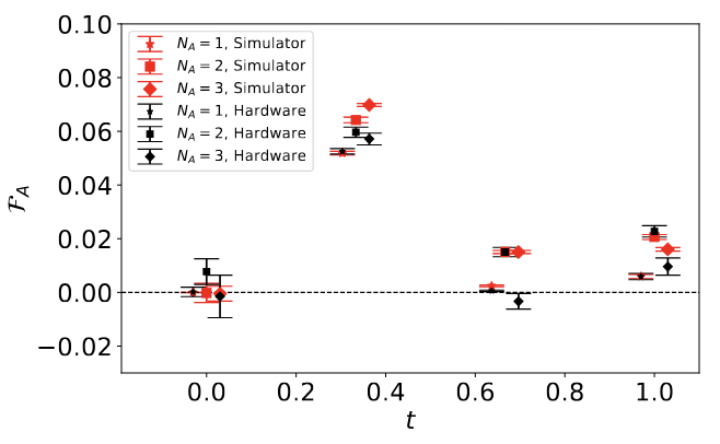 We would like to thank Roland Farrell, Henry Froland and Nikita Zemlevskiy for helpful discussions. This work was supported, in part, by U.S. Department of Energy, Office of Science, Office of Nuclear Physics, InQubator for Quantum Simulation (IQuS) under Award Number DOE (NP) Award DE-SC0020970 via the program on Quantum Horizons: QIS Research and Innovation for Nuclear Science, by the Quantum Science Center (QSC) which is a National Quantum Information Science Research Center of the U.S Department of Energy, and by PNNL’s Quantum Algorithms and Architecture for Domain Science (QuAADS) Laboratory Directed Research and Development (LDRD) Initiative. The Pacific Northwest National Laboratory is operated by Battelle for the U.S. Department of Energy under Contract DE-AC05 76RL01830. It was also supported, in part, by the Department of Physics and the College of Arts and Sciences at the University of Washington. This research used resources of the Oak Ridge Leadership Computing Facility (OLCF), which is a DOE Office of Science User Facility supported under Contract DE AC05-00OR22725. We acknowledge the use of IBM Quantum services for this work. The views expressed are those of the authors, and do not reflect the official policy or position of IBM or the IBM Quantum team. This work was enabled, in part, by the use of advanced computational, storage and networking infrastructure provided by the Hyak supercomputer system at the University of Washington. We have made extensive use of Wolfram Mathematica, python, julia, jupyter notebooks in the Conda environment, and IBM’s quantum programming environment qiskit. This research used resources of the National Energy Research Scientific Computing Center (NERSC), a Department of Energy Office of Science User Facility using NERSC award NP-ERCAP0032083.
